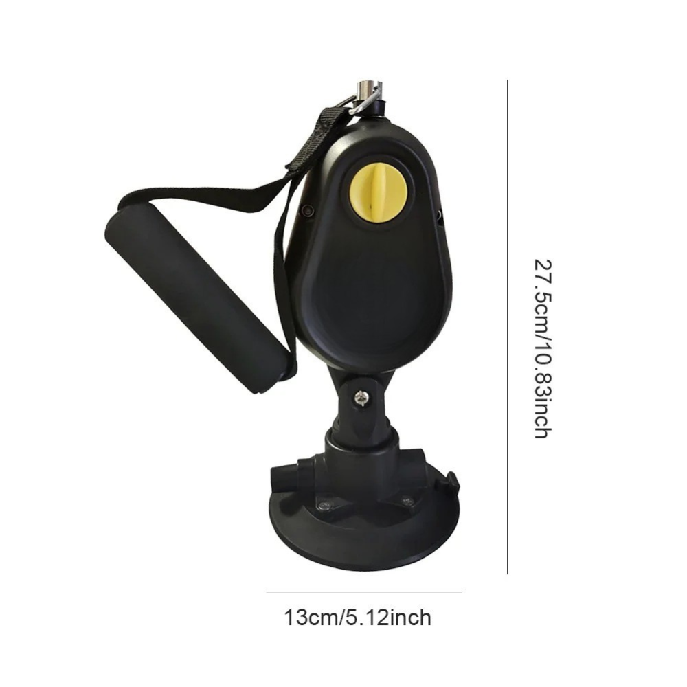 What’s Included: One rope pulley trainer with integrated carabiner, handle strap, and suction-cup mount.